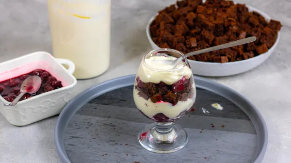 - Используйте металлические ложки — они создают контраст с нежной текстурой.