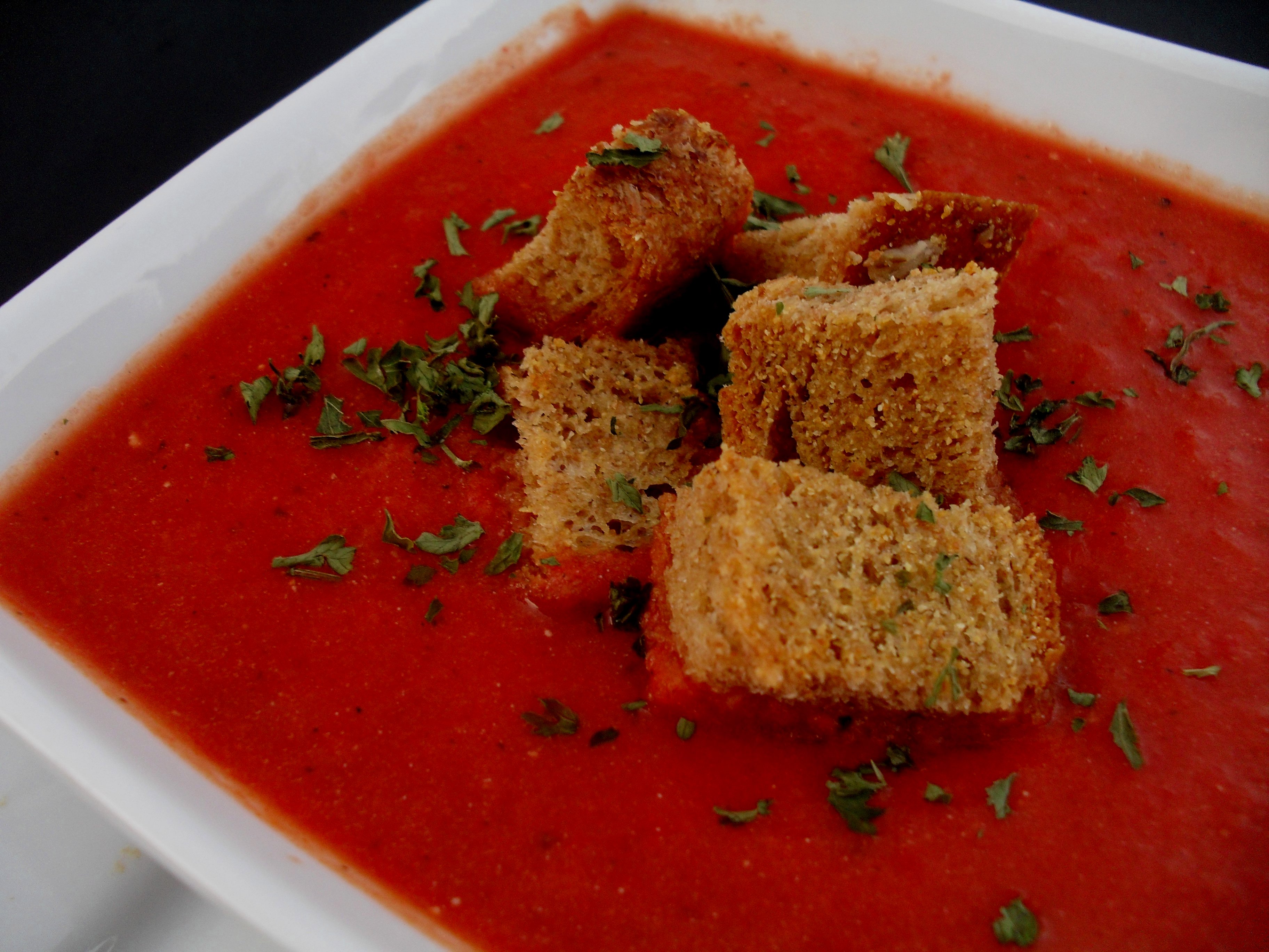 Такой вариант даёт интересный контраст — нежная текстура супа сочетается с плотной структурой ржаного хлеба. В сети «ВкусВилл» появились даже готовые гренки специально для томатного супа по цене 189 ₽ за упаковку.